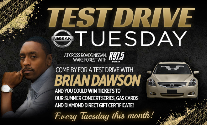 Watch as Brian Dawson meets with General Manager, Dave Cannon, to pick up his new Nissan Pathfinder at Crossroads Nissan of Wake Forest. Stop by Crossroads Nissan in Wake Forest to do a test drive with K97.5’s Brian Dawson! You’ll also have an opportunity to win some amazing prizes like tickets to our summer concert […]